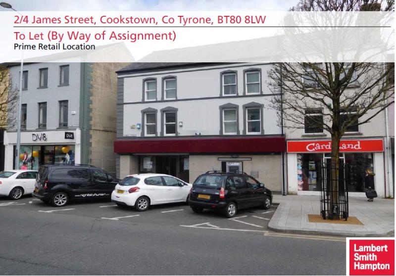 To Let (By Way of Assignment): Former Bank within a prime location. The subject property will be handed over in a semi-fitted condition to include suspended ceiling and predominantly carpeted flooring. The ground floor is primarily made up of an open plan banking hall with the upper floors being office accommodation. The unit occupies a 100% prime location along James Street, with extensive frontage providing the building with great prominence. ACCOMMODATION Ground Floor - 1,775 sq ft First Floor - 360 sq ft Second Floor - 727 sq ft TERMS Term - Existing Lease Expires 6th April 2030. Rent - Passing Rent of £32,500 pax. Repair - Full Repairing and insuring lease. Review - Every 5th year of the term. Tenant Break - Tenant only option to terminate lease at the end of year 15 (April 2025).