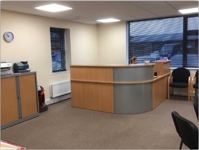 To Let: Ground Floor Office Suite The office suite includes fitted kitchen, disabled WC facilities, fitted cupboard unit and worktop in the main office area. When the current tenants vacate the space will be left empty, however loose tables can be provided if required. The subject benefits from allocated car parking facilities. ACCOMMODATION Reception & Open Plan Area - 554 sq ft Office 1 - 103 sq ft Office 2 - 161 sq ft WC (Shared) - 32 sq ft Kitchen (Shared) - 54 sq ft Store - 101 sq ft