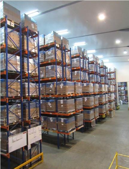 To Let: Chill Warehouse The premises comprise a chilled warehouse of approximately 28,013 sq ft in total within a secure site of approximately 3.35 acres benefiting from a generous concrete yard providing ample parking and turning space, accessed by an electric sliding single front gate. The unit comprises a steel portal frame construction with a pitched roof and solid concrete floor, finished with part concrete slab walls and aluminium profile cladding to the upper walls and roof. Internally the warehouse is entirely chilled which runs from 4 to 10 degrees with 3 phase power supply. They also benefit from a concrete floor, sealed lighting, an internal eaves height of 11m and a 50 KN floor loading and is suitable to store up to 7 shelves of racking providing a total of 5,500 pallets. The property further benefits from an electric roller shutter and 5 dock levellers to the front elevation and an alarm system. The external area also bene fits from a lorry wash area, CCTV, flood lighting, security personnel and barrier access control.