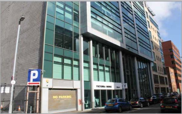 To Let: Grade A City Centre Office Accommodation Victoria House is an office development benefiting from a stunning fully glazed frontage and comprising ground and ten upper floors of Grade A office accommodation. The property is unique from a Belfast perspective as there are no internal structural columns interrupting the open plan floor plates therefore maximising the efficiency of floor space use. • Feature entrance foyer • 2 high speed passenger lifts to all floors • Full air conditioning (heating and cooling) • Raised access flooring • Floor to ceiling glazing to front elevation • Fully fitted Ladies, Gents and Disabled Toilets on each floor • Suspended ceilings with integrated recessed fluorescent strip lighting • Painted walls