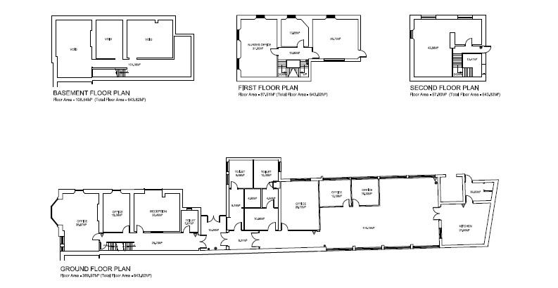 For Sale: Former Office/Medical Facility The subject property comprises a three storey over basement semi-detached office/medical facility of traditional masonry construction with feature stone walls under a pitched roof. The property is currently laid out to provide office accommodation on ground floor with reception, toilet and kitchen facilities. There is further office/storage accommodation across both the first and second floors. In terms of specification there is a mixture of both double and single glazed windows, carpet and lino covered concrete floors and fluorescent strip lighting. There is a boiler located to the rear of the property and is gas fired. There is car parking for approximately 4 cars to the front of the building. ACCOMMODATION Basement - 1,168 sq ft Ground Floor - 4,196 sq ft First Floor - 944 sq ft Second Floor - 622 sq ft Updated March 2020