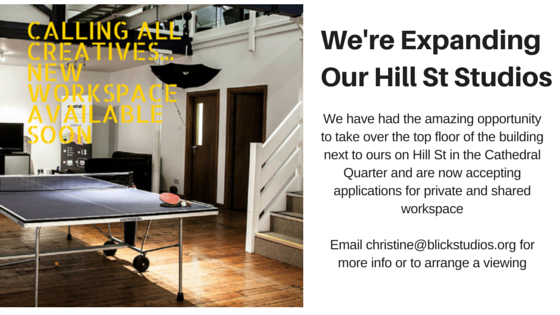Workspace in our Cathedral Quarter premises on Hill St. Fully serviced, flexible and affordable shared workspace and private offices to small and start up creative businesses. All the space is fully serviced and furnished and our prices are all inclusive including rent, rates, utilities, broadband and use of meeting space, making renting an office simple. Virtual Services - Basic Business Address Service, Advanced Business Address Service, Bookkeeping and Admin Services Available Space *New Space Hill Street* Blick have now taken over the top floor of the building next door to their building on Hill St in the Cathedral Quarter and are now accepting applications for private and shared workspace. The price for a deskspace in the shared deskspace is £150 per desk including all rent, rates and utilities. We can offer reduced rates for anyone wanting to rent more than one desk. There is also a small selection of varying sizes of private offices that will be available. Added 29/09/15