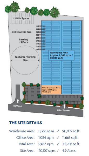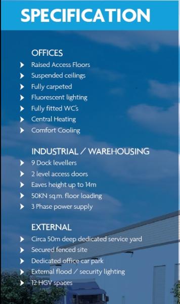 Design & Build Hi-Bay Industrial/Warehouse Opportunity. Industrial / Warehouse unit totalling 101,700 sq ft / 9,452 m2 Integrated hi-spec offices Steel portal frame construction with profile metal clad roof with up to 14m eaves height Excellent transport links via A1 Euroroute Excellent on site parking Sustainable features Dedicated service yard with a depth of circa 50m Additional land is available if required Warehouse Area - 90,039 sq ft Office Area - 11,663 sq ft Total process from inception to occupation is 17 months